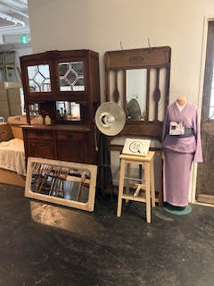 正直、この看板がなければ見逃してしまいそう。でも臆せずビルの中へ進み、少し年季の入ったエレベーターを上がると、そこにはアンティーク家具とコーヒー豆の袋が並び、さらに奥へ進むと…