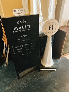 駅から少し歩くと、ビルの一角に小さな看板があり、それが「cafe matin」の目印です。